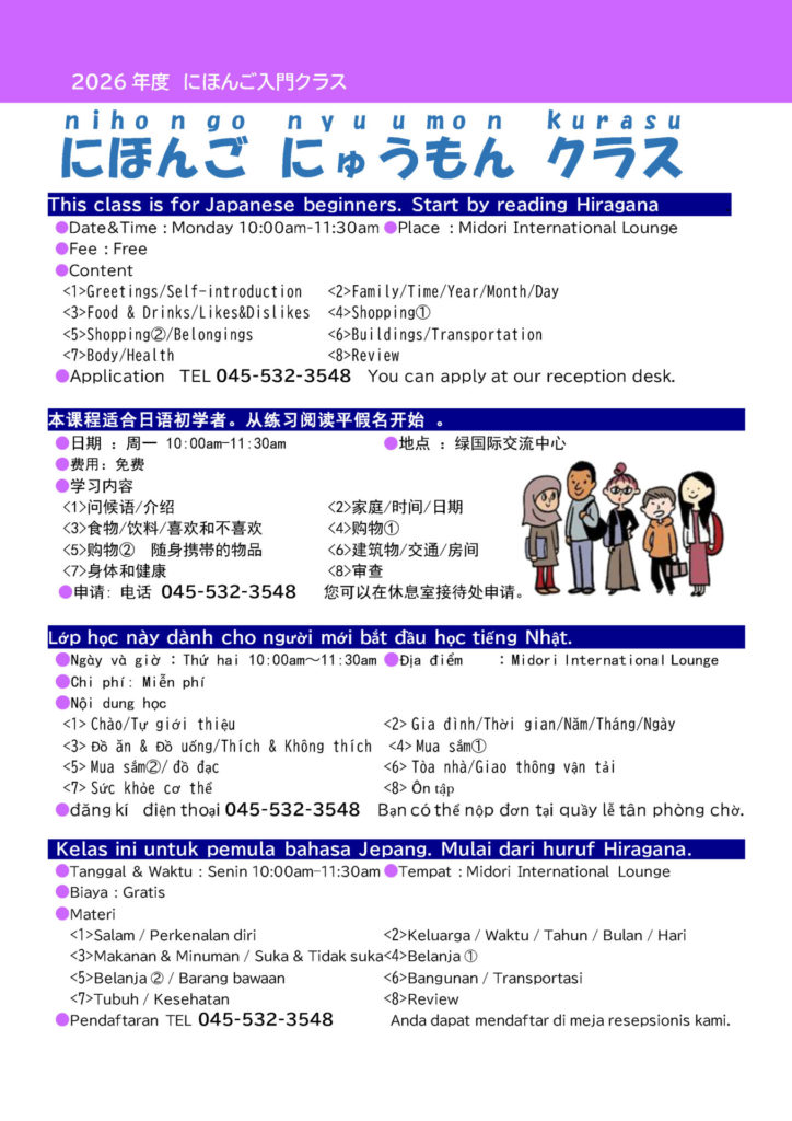 【募集中】にほんご入門クラス