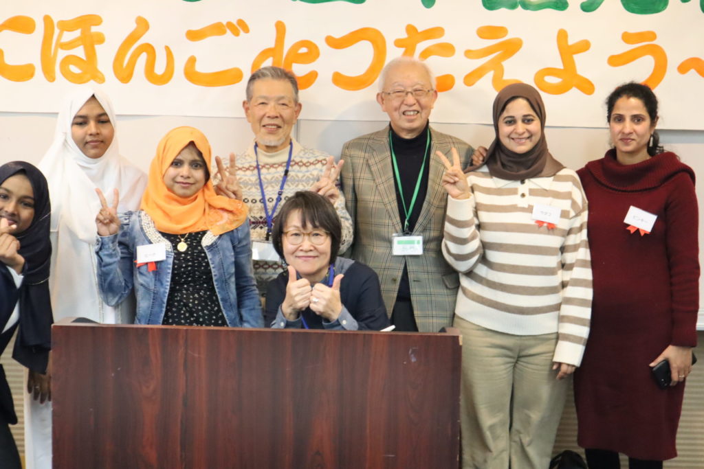 初めは、緊張で顔が強張っていた発表者の皆さんでしたが、本番は日々の練習の成果を発揮して生き生きと発表し始めました。 原稿を見ずに流暢に話す方、故郷を語るうちに、涙で言葉が詰まる方もいて、観覧者も思わず涙を浮かべていました。小学生の男子からは「ラマダン」について、苦しい体験をして、他者の気持ちを知るためのものだと紹介がありました。また、多くの発表者が、家族の絆を大切する文化や、毎年行われるお祭りや特別な食事の習慣について語りました。さらに旅で分かった四季折々の日本の美しさ、日本人には当たり前に思える街の清潔さ、電車の時間の正確さ、健康保険制度の恩恵、銃のない安全な社会など、日本で暮らす中で感じた驚きが次々と発表されました。中には、日本に来た頃は孤立していたのに、日本語を学ぶにつれて積極的に生きていけるようになり、自分が日本人のように時間の効率を優先するようになっていたことへの気づきも聞かれました。皆さん、日本語の間違いを恐れずに堂々と発表し、見学者の心に響く素晴らしい発表会となりました。