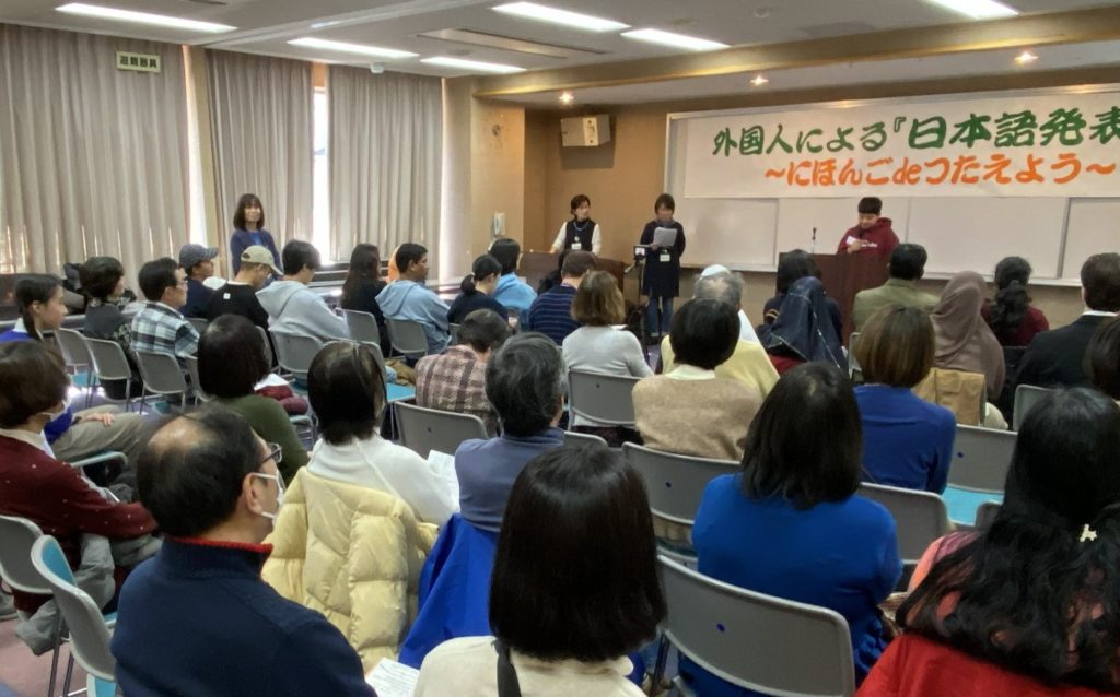 【開催報告】外国人による「日本語発表会」 ~にほんごdeつたえよう~ 2026年2月13日 2026年2月18日 イベント・こうざ 2026年2月1日(日)午後、外国人による「日本語発表会」を十日市場地域ケアプラザ多目的ホールで開催しました。 発表者は、日本語教室の学習者やOG・OB、IISJ(India International School in Japan)の児童、区内小学校に通う児童など、計16名。出身国はインド、中国を中心に、フィリピン、バングラデシュ、モロッコ、アメリカと多彩でした。 初めは、緊張で顔が強張っていた発表者の皆さんでしたが、本番は日々の練習の成果を発揮して生き生きと発表し始めました。 原稿を見ずに流暢に話す方、故郷を語るうちに、涙で言葉が詰まる方もいて、観覧者も思わず涙を浮かべていました。小学生の男子からは「ラマダン」について、苦しい体験をして、他者の気持ちを知るためのものだと紹介がありました。また、多くの発表者が、家族の絆を大切する文化や、毎年行われるお祭りや特別な食事の習慣について語りました。さらに旅で分かった四季折々の日本の美しさ、日本人には当たり前に思える街の清潔さ、電車の時間の正確さ、健康保険制度の恩恵、銃のない安全な社会など、日本で暮らす中で感じた驚きが次々と発表されました。中には、日本に来た頃は孤立していたのに、日本語を学ぶにつれて積極的に生きていけるようになり、自分が日本人のように時間の効率を優先するようになっていたことへの気づきも聞かれました。皆さん、日本語の間違いを恐れずに堂々と発表し、見学者の心に響く素晴らしい発表会となりました。 発表後は、発表者と観覧者との交流会が催されました。多くの方が感想を書いてくださり、日本語、英語、中国語、アラビア語の書かれた色画用紙の花が、発表会の最後を飾ってくれました。 今回の発表会を通して、外国人の皆さんが、自分の国の文化に誇りを持ちながら、日本に深い敬意を寄せてくださっていることを改めて感じました。多文化共生とは、まさにこのような姿勢をお互いに大切にしていくことだと実感できる、貴重な機会となりました。